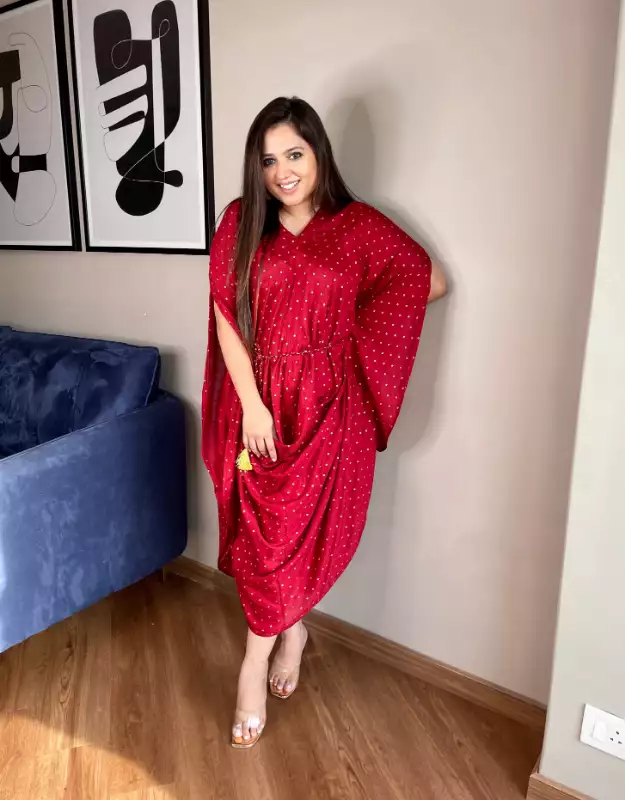 Get your hands on this super stylish drape dress perfect as a bridesmaid or even for a Haldi, Mehendi or cocktail night.