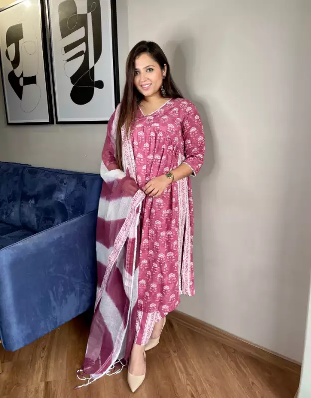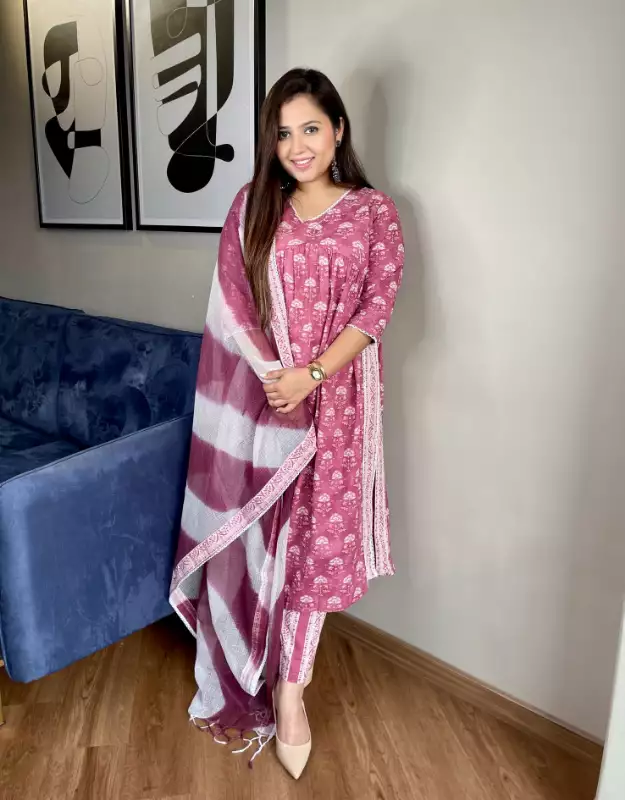 Beautiful Nayra Cut Cotton Ethnic SUIT - PINK WARDROBE