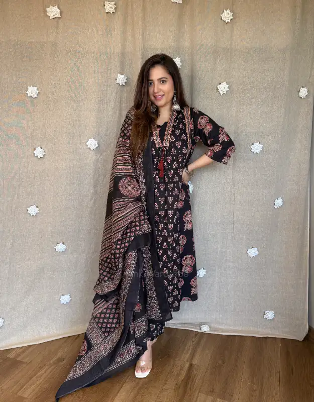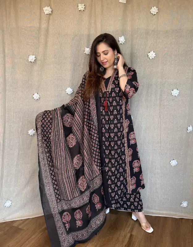 Perfect for summer ethnic wear, office wear suits, Jaipur cotton suits, premium cotton kurta sets, Ajrakh print suits, daily wear luxury suits, breathable festive wear, Indian ethnic cotton collections. Inspired by labels like Cottons Jaipur, Seasons India, Baag & Indian Ethnic Company.