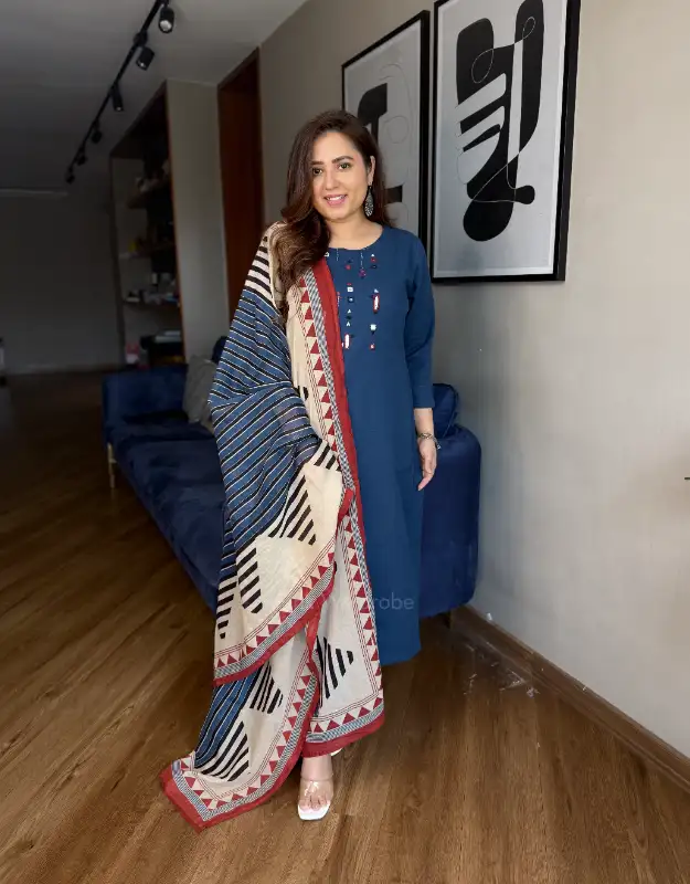 Perfect for summer ethnic wear, office wear, festive brunches, casual outings, premium daily wear, and elegant day occasions, this outfit blends traditional Ajrak craftsmanship with modern minimal styling. A must-have for lovers of premium cotton ethnic wear, designer kurta sets, handcrafted Indian suits, breathable summer fashion, and timeless artisanal prints