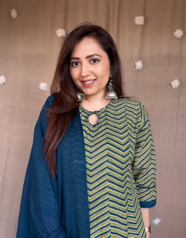 Emerald Echo ajrakh geometry print cotton suit