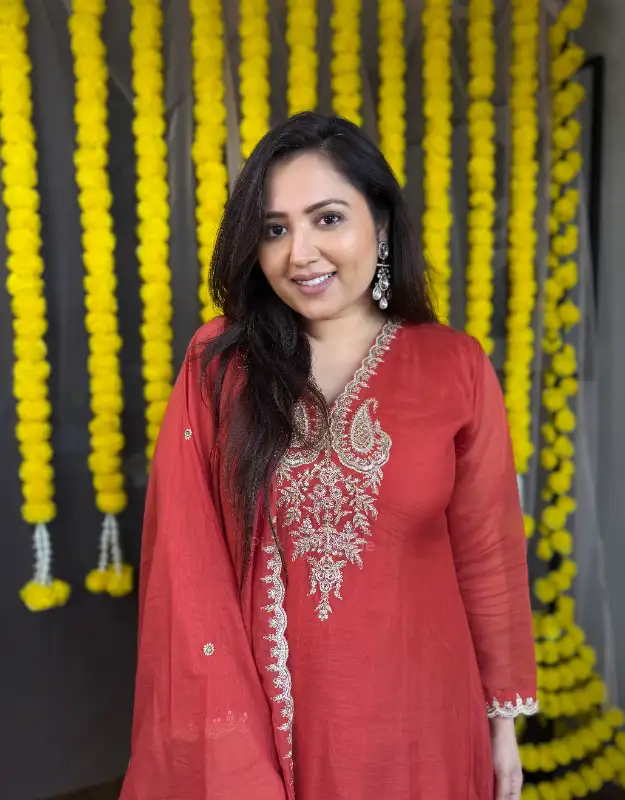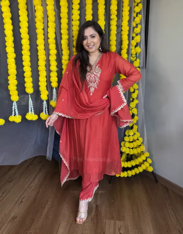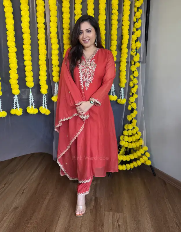 A regal Royal Blue Mul Chanderi Suit with detailed neckline work, paired with smart tailored pants and a luxurious pure Banarasi Mul Chanderi dupatta. A stunning option for wedding functions, Diwali evenings, or sangeet nights, this outfit brings effortless royalty to your wardrobe at an affordable price point.
