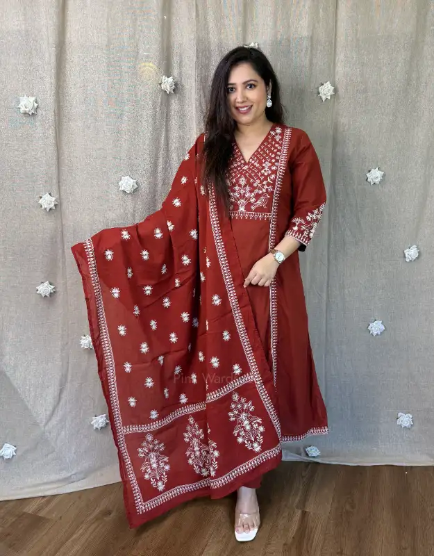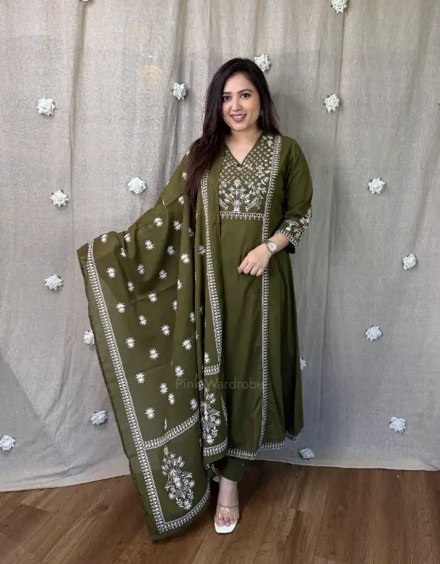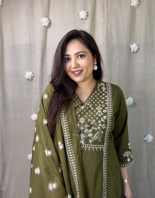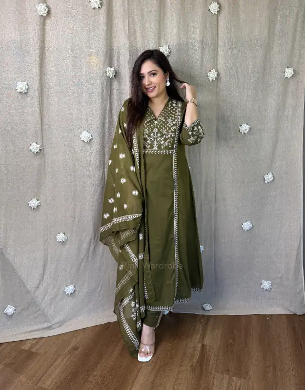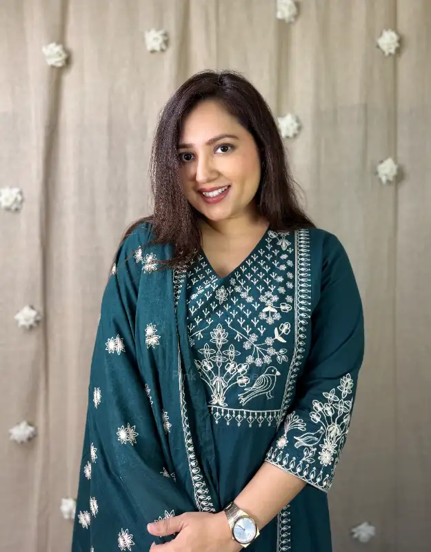 Introducing the Tarunika Cotton Edit — a beautifully curated trio of premium cotton suits designed for effortless elegance. Each A-line kurta features delicate embroidery detailing on the neckline and sleeves, paired with smart fitted pants for a refined and polished silhouette. Completing the look is a gracefully printed dupatta, adding charm and sophistication to the entire ensemble.