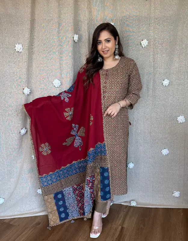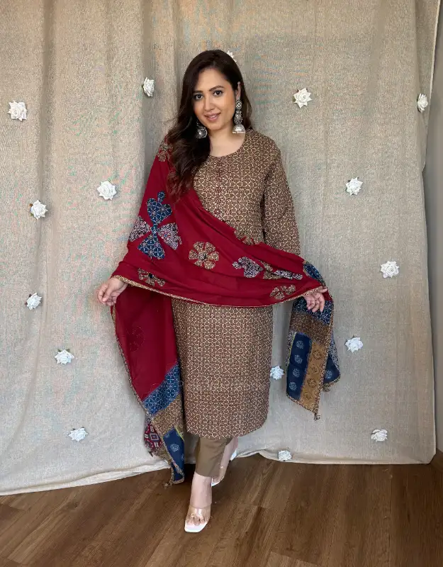 * Premium Ajrak print suit set for women