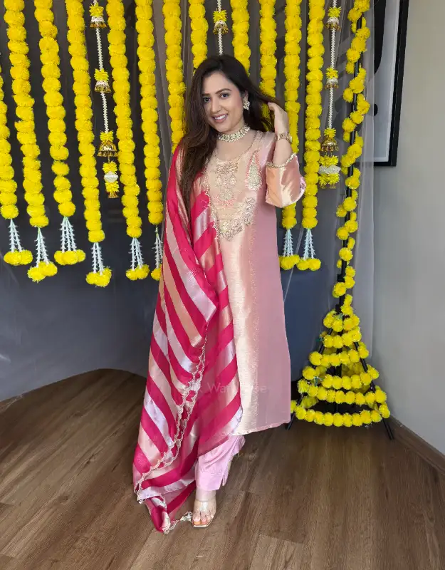 Whether you choose the soft romance of Onion Pink or the sophisticated charm of Brown, both colours are curated for women who seek luxury wedding suits, premium trousseau outfits, and investment-worthy occasion wear. Ideal for engagement parties, sangeet nights, cocktail evenings, reception gatherings, a…