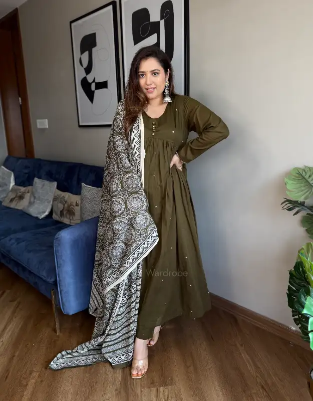 Designed for women who love luxury comfort, breathable fabrics, timeless silhouettes, and subtle festive elegance, this set is ideal for high-end everyday ethnic wear, smart workwear, and premium casual styling.