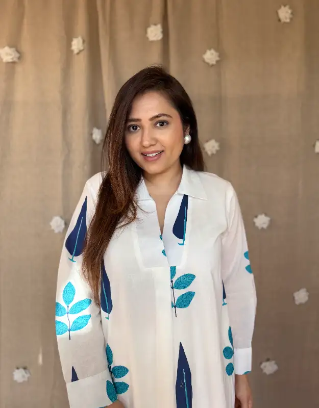 Crafted in soft, summer-friendly cotton with attached lining, this A-line collared kurta offers a relaxed yet flattering silhouette, complete with two functional side pockets for everyday ease.