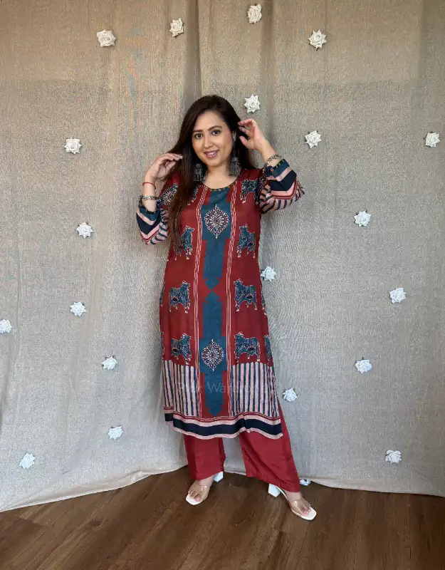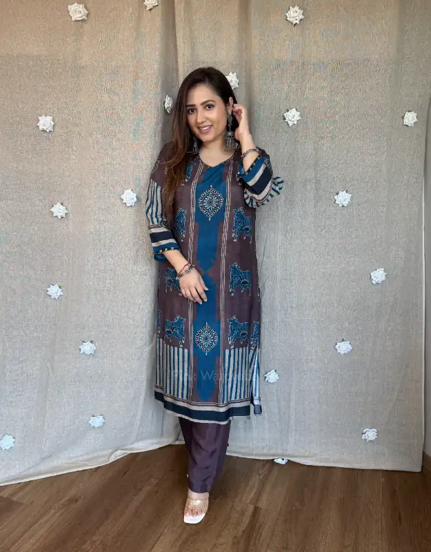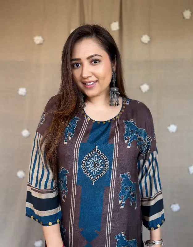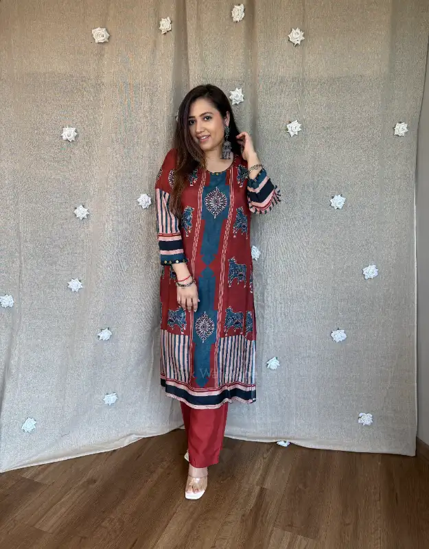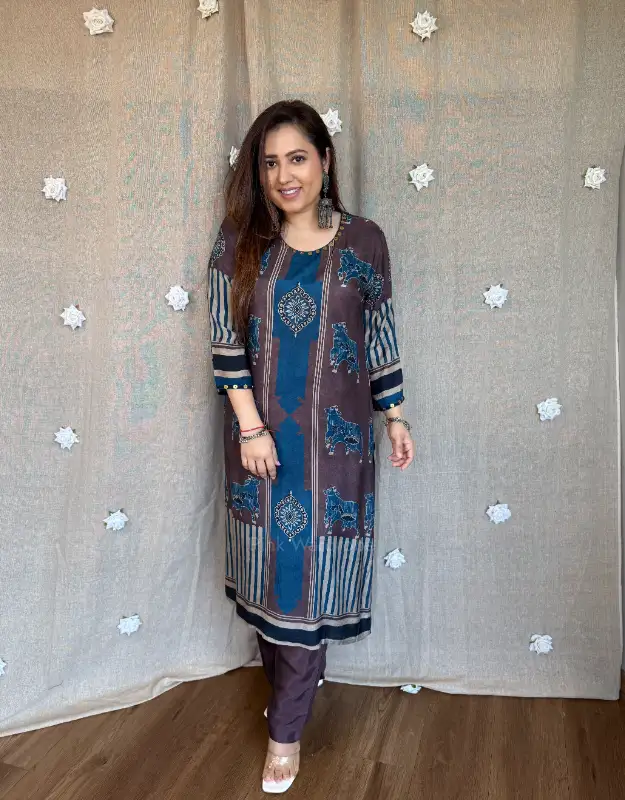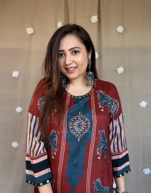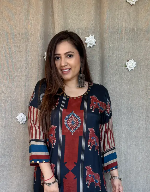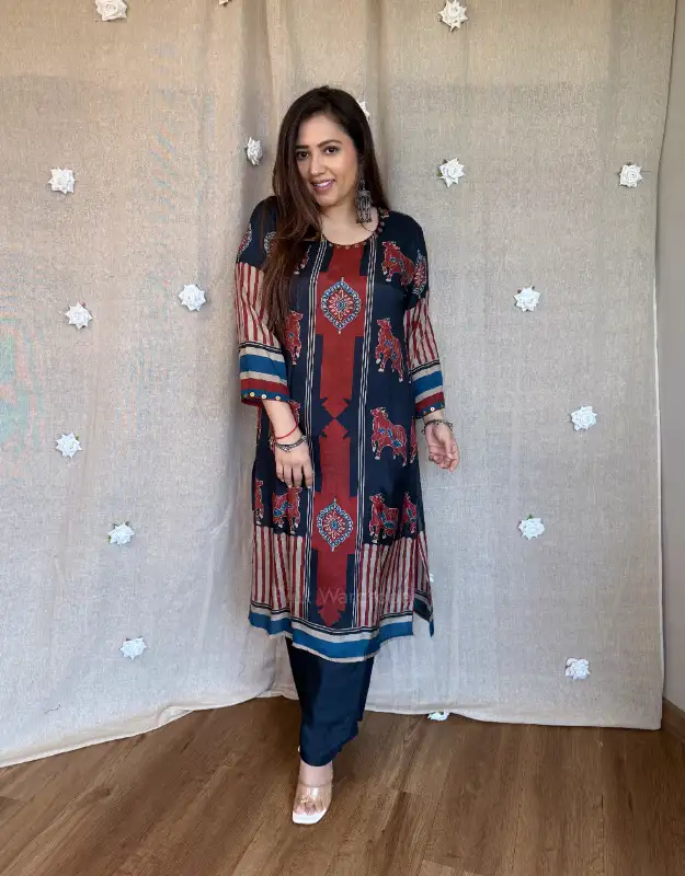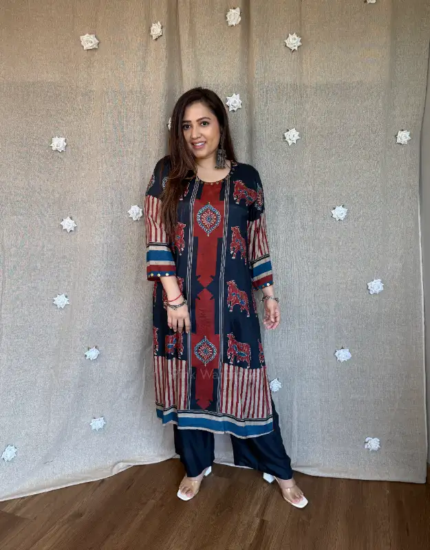 Introducing our luxury Ajrakh Muslin Silk Kurta Sets — where timeless craftsmanship meets breathable summer elegance. Crafted in pure muslin silk, these kurtas feature intricate Ajrakh (Rajrakh) inspired prints, offering a rich, artisanal look with a soft, airy, and flowy texture — making it a perfect preferred choice for summer wear.