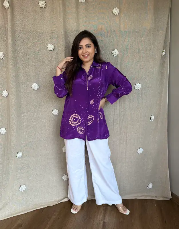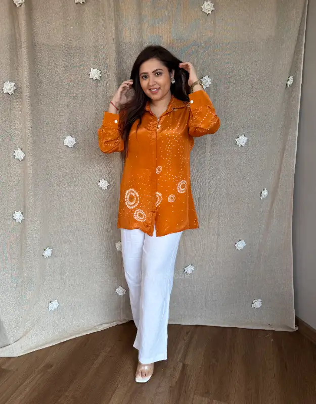 Beautiful crepe tops featuring elegant Bandhej prints in stunning colors — a perfect blend of tradition and trend. These versatile tops can be easily teamed up with your denims, trousers, or smart pants, making them ideal for daily wear, office looks, or casual outings. Crafted in premium crepe fabric for a soft, flowy, and flattering fit.
