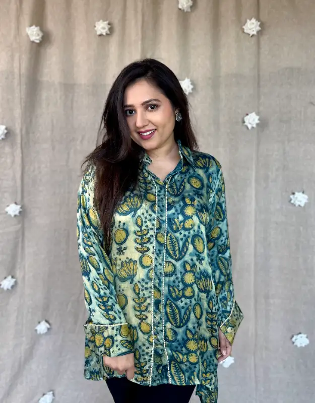 Elevate your style with our Premium Modal Satin Ajrak Pinched Tops, designed for women who love understated luxury. Crafted in rich modal satin with timeless Ajrak prints, these tops feature a flattering pinched silhouette and a silky, elegant drape. The highlight is the beautiful back work motif adorned with delicate mirror detailing, adding a classy yet modern statement that effortlessly elevates the look. Perfect for office wear, festive gatherings, brunch dates, and elegant evenings.