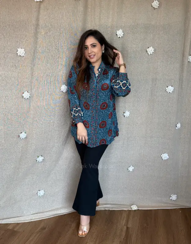 Experience timeless elegance with our digitally printed Ajrak tops in premium crepe silk—lightweight, flowy, and effortlessly stylish. The rich digital Ajrak motifs blend traditional heritage with a modern aesthetic, making it a must-have piece for daily ethnic wear, office formals, and Indo-fusion styling. The hip-covering length ensures a flattering silhouette for all body types and ages—from college-going girls to working professionals. Pair it with linen pants, denims, formal trousers, or even shorts for that perfect kurti-jhumka look that’s both comfortable and fashion-forward. The silk feel is soft and luxurious, ideal for all seasons.