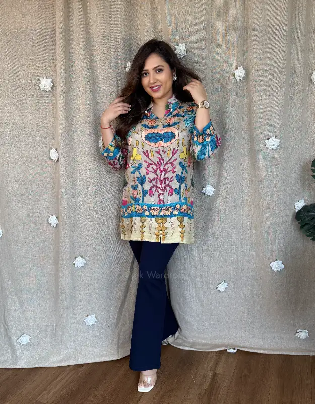 Elevate your everyday style with these two elegant Kalamkari printed tops crafted in premium viscose muslin—lightweight, breathable, and effortlessly chic. Designed for comfort with a refined ethnic touch, these smart casual tops pair beautifully with denims, trousers, or jeggings, making them ideal for daily wear, office wear, and casual outings. A perfect blend of heritage Kalamkari prints and modern silhouettes for women who love understated elegance with comfort.