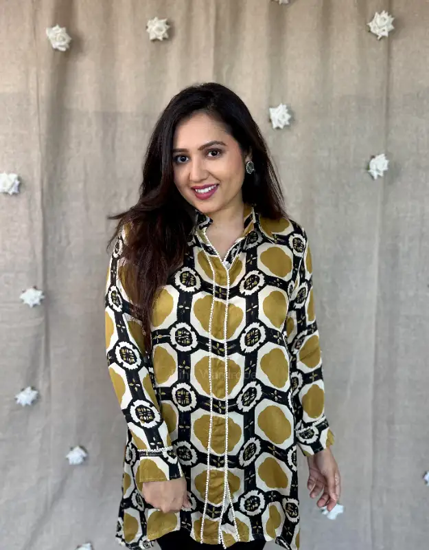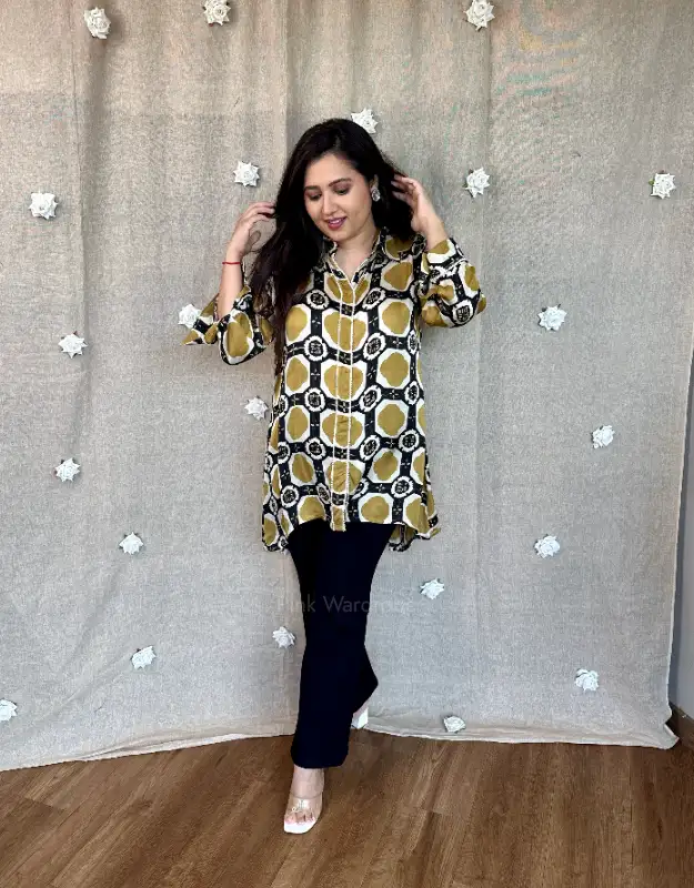 Elevate your style with our Premium Modal Satin Ajrak Pinched Tops, designed for women who love understated luxury. Crafted in rich modal satin with timeless Ajrak prints, these tops feature a flattering pinched silhouette and a silky, elegant drape. The highlight is the beautiful back work motif adorned with delicate mirror detailing, adding a classy yet modern statement that effortlessly elevates the look. Perfect for office wear, festive gatherings, brunch dates, and elegant evenings.
