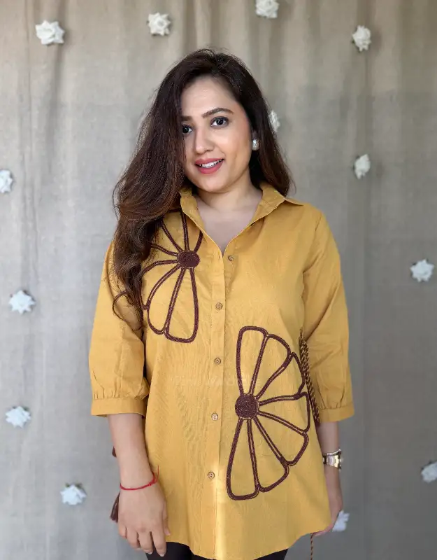 yellow cotton shirt, summer cotton shirt women, breathable daily wear shirts, premium cotton office wear, lightweight summer fashion India