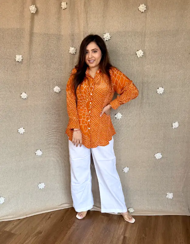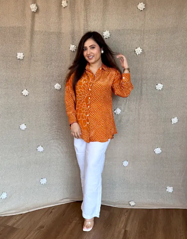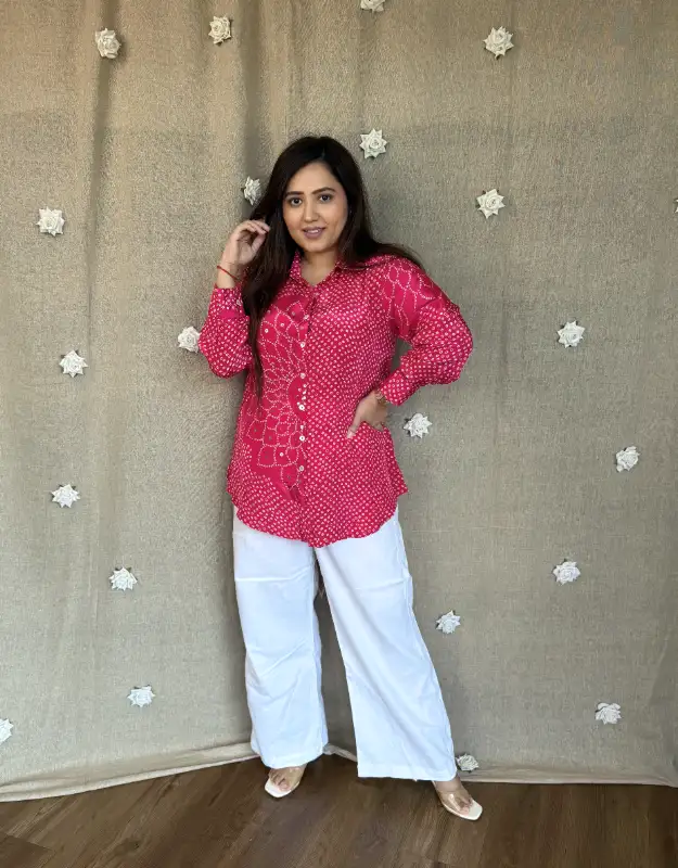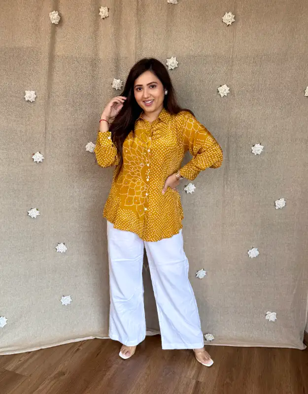 Beautiful crepe tops featuring elegant Bandhej prints in three stunning colors — a perfect blend of tradition and trend. These versatile tops can be easily teamed up with your denims, trousers, or smart pants, making them ideal for daily wear, office looks, or casual outings. Crafted in premium crepe fabric for a soft, flowy, and flattering fit.