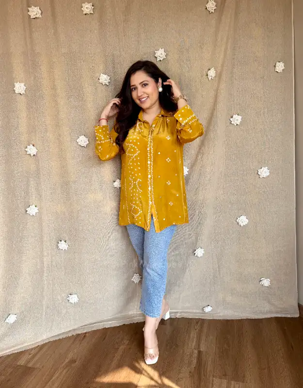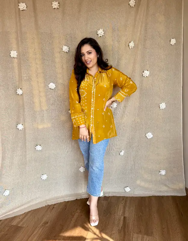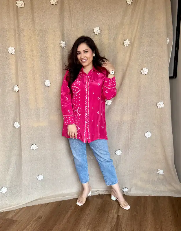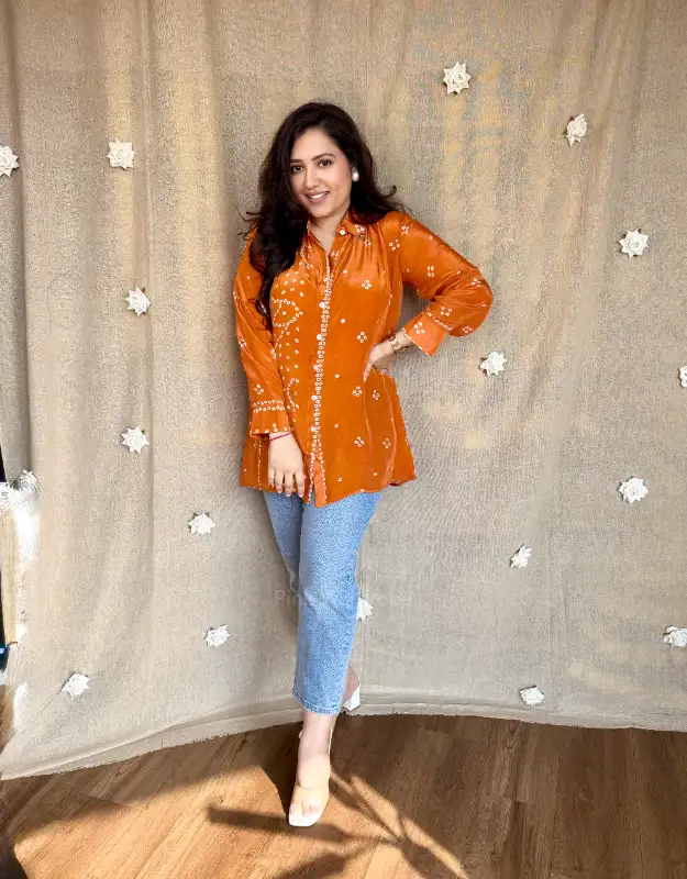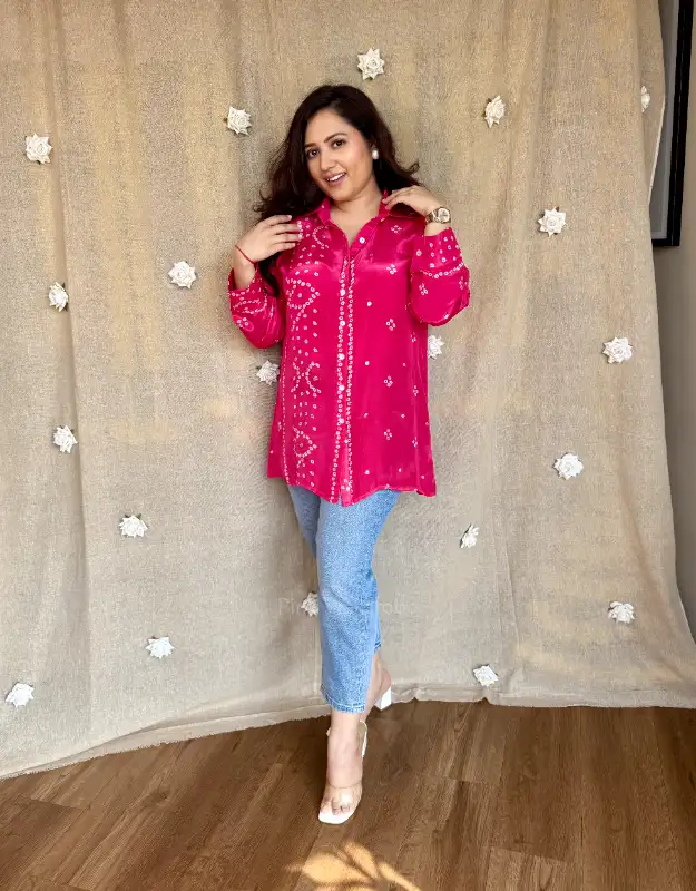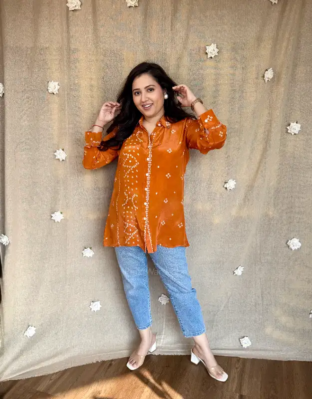 Beautiful crepe tops featuring elegant Bandhej prints in three stunning colors — a perfect blend of tradition and trend. These versatile tops can be easily teamed up with your denims, trousers, or smart pants, making them ideal for daily wear, office looks, or casual outings. Crafted in premium crepe fabric for a soft, flowy, and flattering fit.
