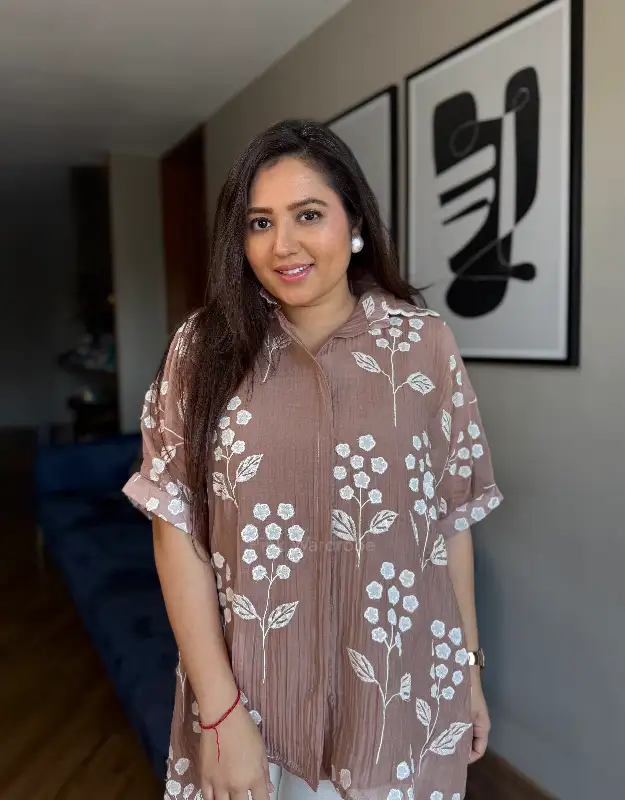 Ideal for small parties, festive get-togethers, poojas, or travel-ready chic—this piece elevates your smart-casual wardrobe with its artistic detailing and rich texture. Whether you’re heading for a brunch or a family function, this classic set ensures you look polished yet relaxed.