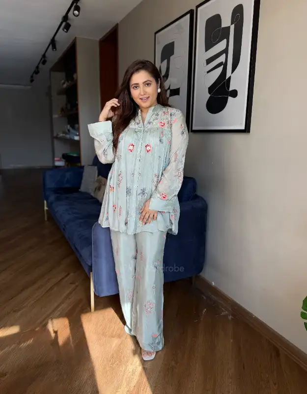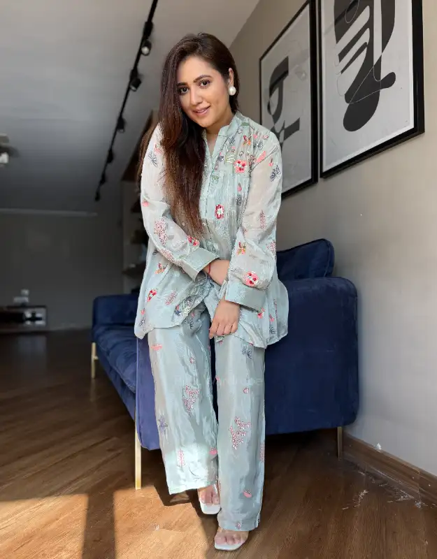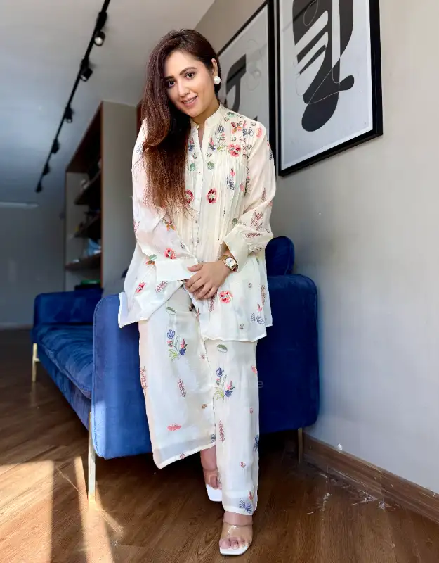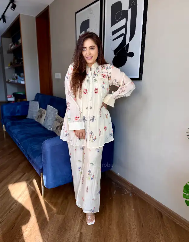* All-over dainty multicolor floral & artistic motif embroidery on top and pants