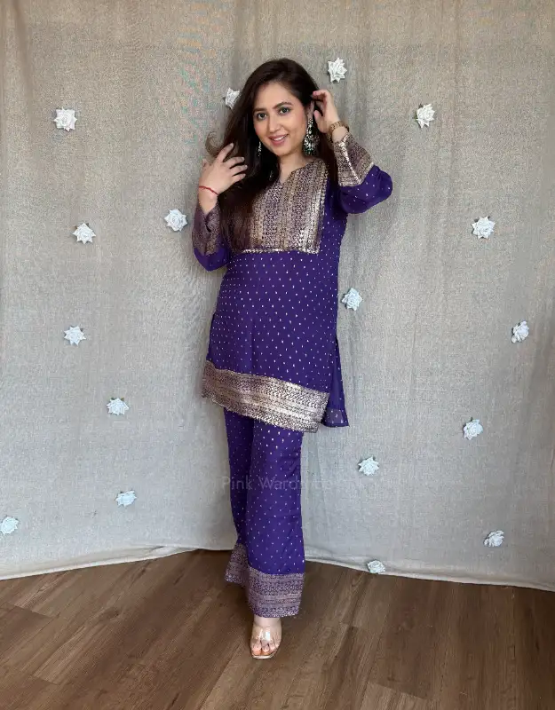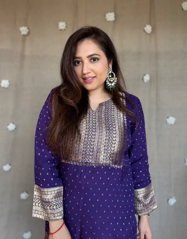 Crafted in premium Kosai silk jacquard with soft mal lining in both top & bottom, this set offers the perfect balance of breathability, comfort, and structure—ideal for long festive hours while keeping your look elegant and refined.