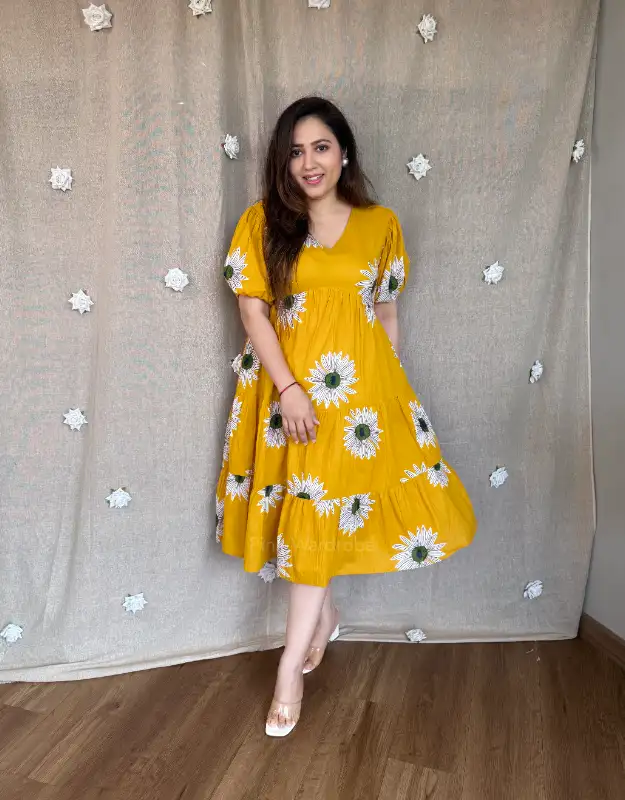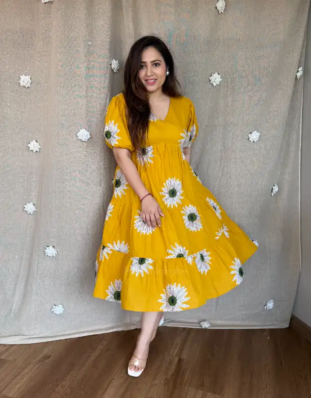 Four stunning premium cotton dresses designed for effortless elegance ? Two styles bloom in soft floral prints, while two celebrate timeless Indian heritage prints — a perfect blend of modern chic and cultural charm. The flattering fit & flare silhouette gives a breezy, feminine flow, while the Peter Pan collar styles add a touch of vintage sophistication and polished grace.