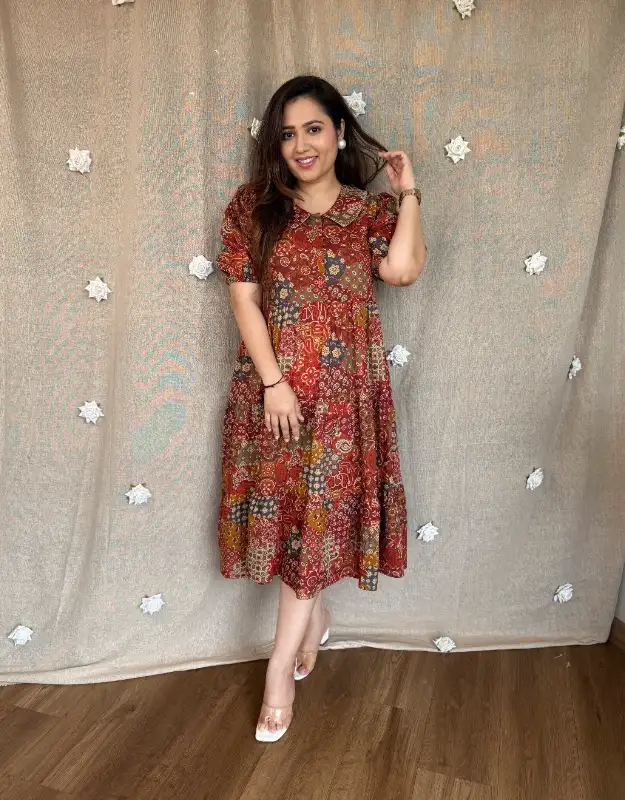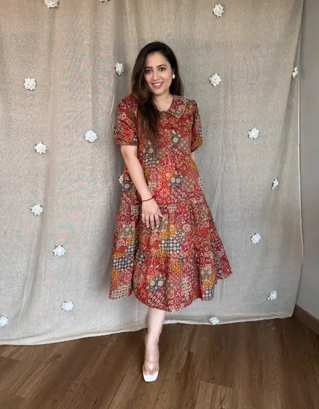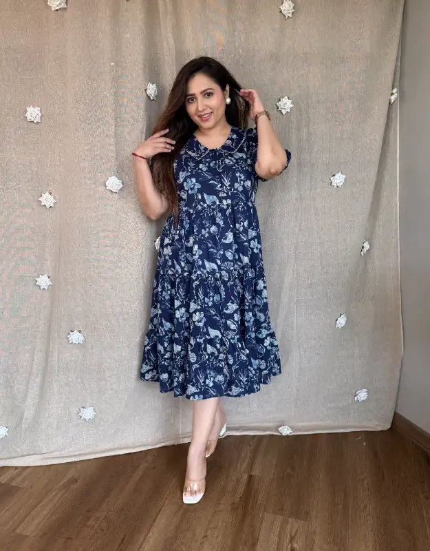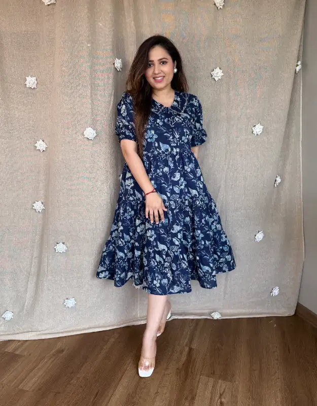 Two stunning premium cotton dresses designed for effortless elegance ? Two styles bloom in soft floral prints, while two celebrate timeless Indian heritage prints — a perfect blend of modern chic and cultural charm. The flattering fit & flare silhouette gives a breezy, feminine flow, while the Peter Pan collar styles add a touch of vintage sophistication and polished grace.